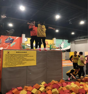 跟隨著教練我們迅速來到了本次團(tuán)建活動的第一個項(xiàng)目:蹦床技巧PK,此項(xiàng)目由每組成員單獨(dú)PK,每個組員有2次機(jī)會,動作合格者得1分,累計(jì)最低分得組員是要受到懲罰得哦,每組的隊(duì)員都非常認(rèn)真的聆聽教練的動作要領(lǐng)以及注意事項(xiàng),在練習(xí)時也非常認(rèn)真,相互學(xué)習(xí),不停的去探討技巧,充分的展示了我們團(tuán)隊(duì)隊(duì)員之間的團(tuán)結(jié)。