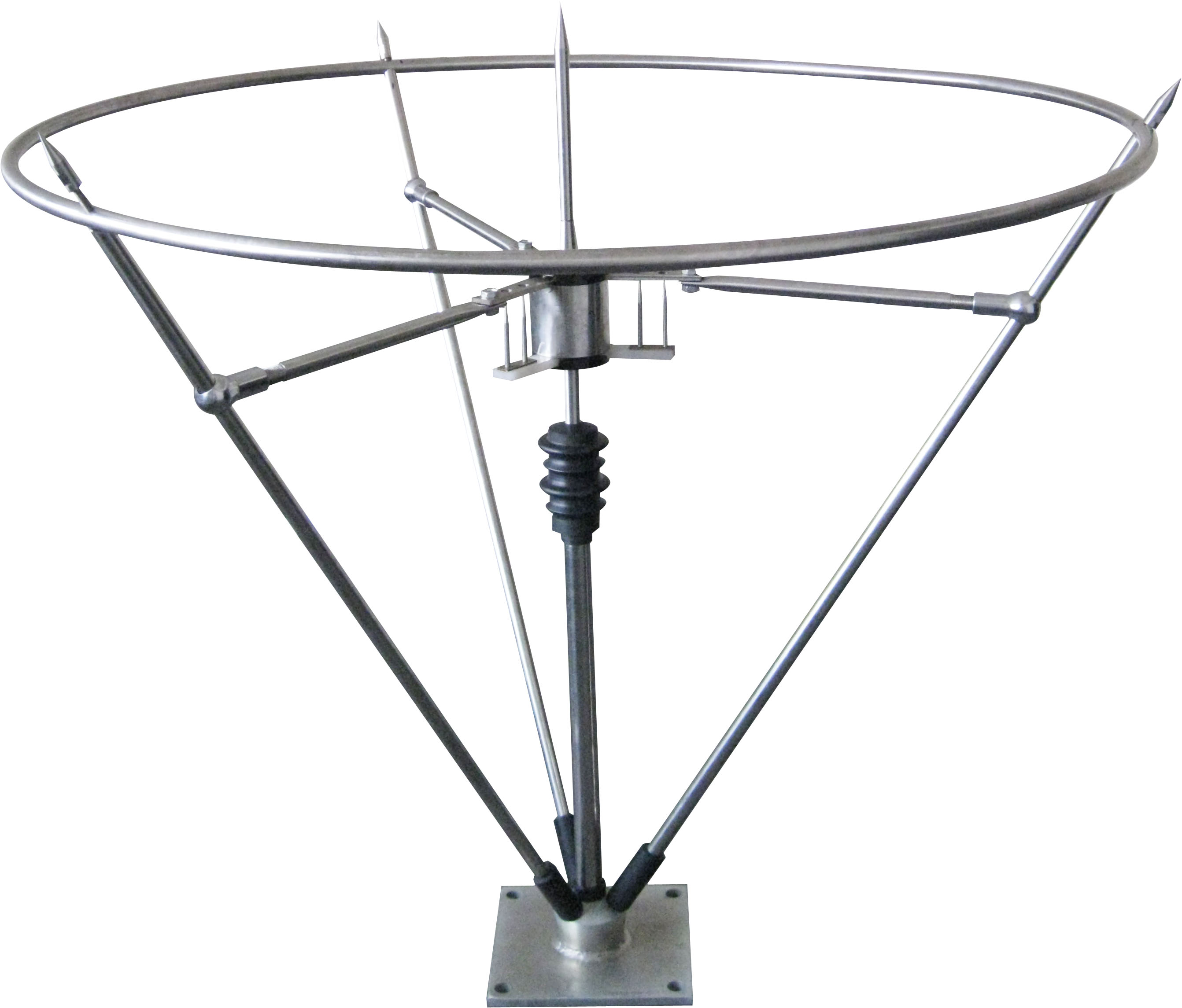 ● 可控放電避雷針針頭要求可控放電均壓環水平,主放電針在鉛垂方向。不允許在避雷針及其支柱上懸掛電話線、廣播線、電視天線及電力架空線等。